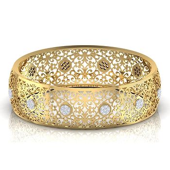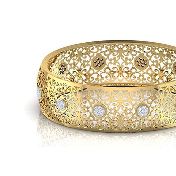 Aira Cutwork Diamond Bangle For Women. Set in 18 KT Yellow Gold with Diamond (0.852 Ct, IJ-SI). The beautiful jewelry is crafted based on International Necklaces theme ideal for Work Wear. Buy Jewelry online from India's Largest Online Jeweler. Shop perfect Jewelry gifts for your loved ones in the US. 15-Days Money Back, 100% Certified.
