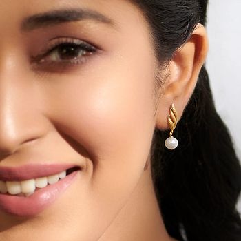 Bevan Hammered Pearl Drop Earrings For Women. Set in 18 KT Yellow Gold with Gemstone ideal for Work Wear. Buy Jewelry online from India's Largest Online Jeweler. Shop perfect Jewelry gifts for your loved ones in the US. 15-Days Money Back, 100% Certified.