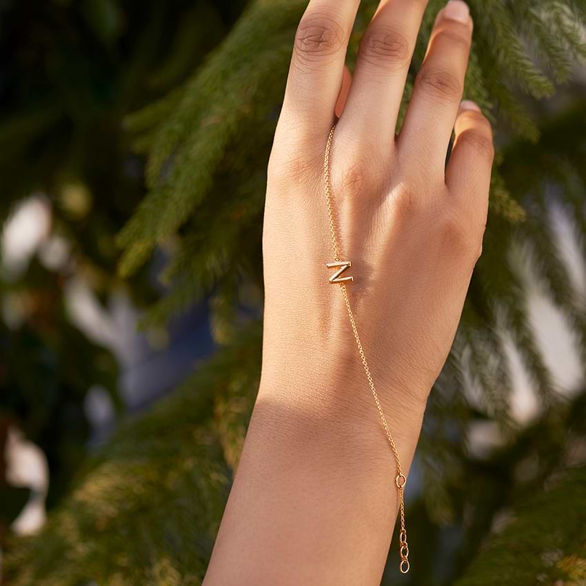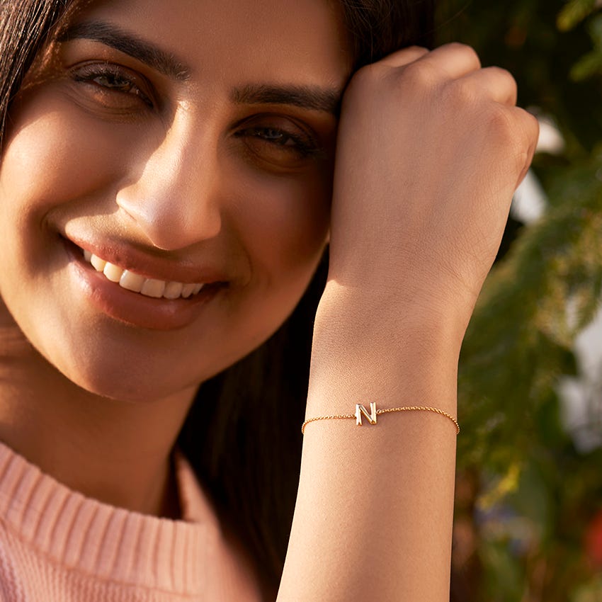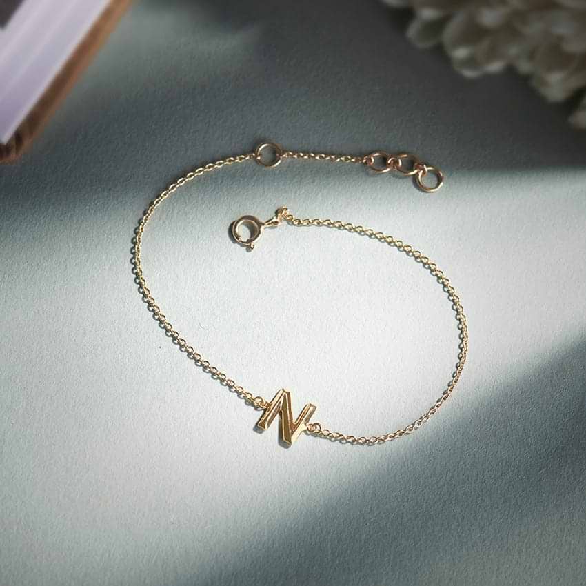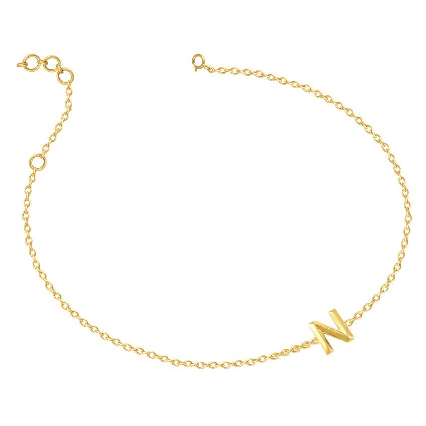 Bold Gold Alphabet N Bracelet For Women. Set in 14 KT Yellow Gold with Gold ideal for Work Wear. Buy Jewelry online from India's Largest Online Jeweler. Shop perfect Jewelry gifts for your loved ones in the US. 15-Days Money Back, 100% Certified.