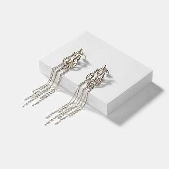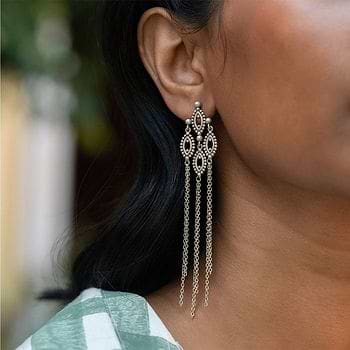 Care Tips: The first step is to store your jewellery in a zip lock bag when you're not wearing it. Also, avoid direct contact with chemicals such as perfumes, sanitisers and the likes. Total Earring Length: 95.0 mm | Broadest Breadth: 18.0 mm | Dangling Chain Length: 65.0 mm