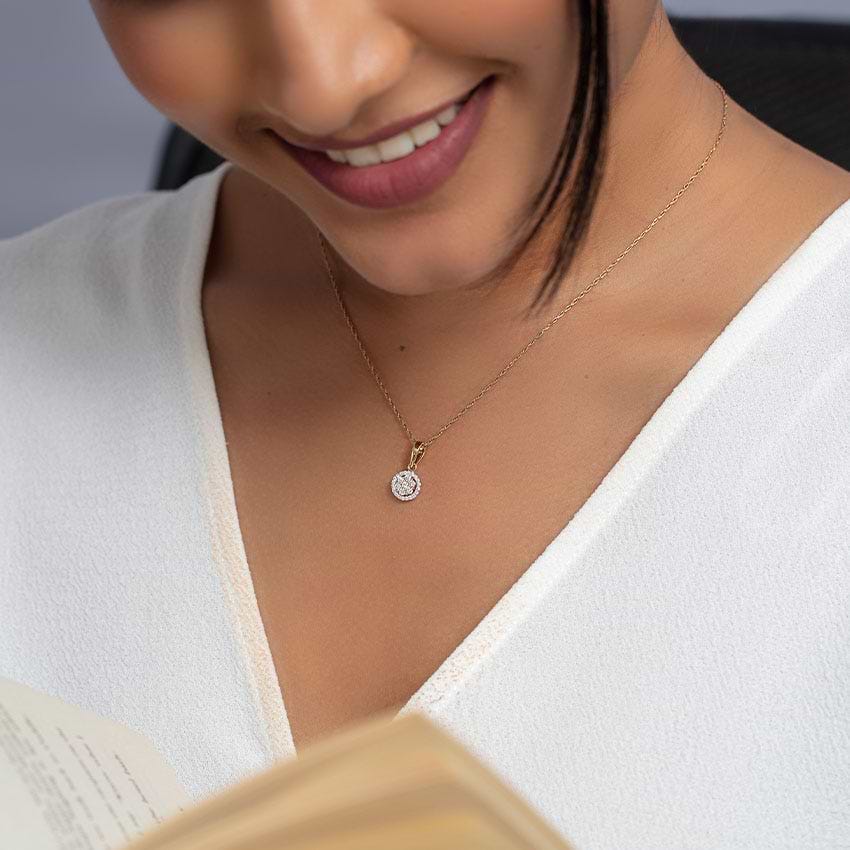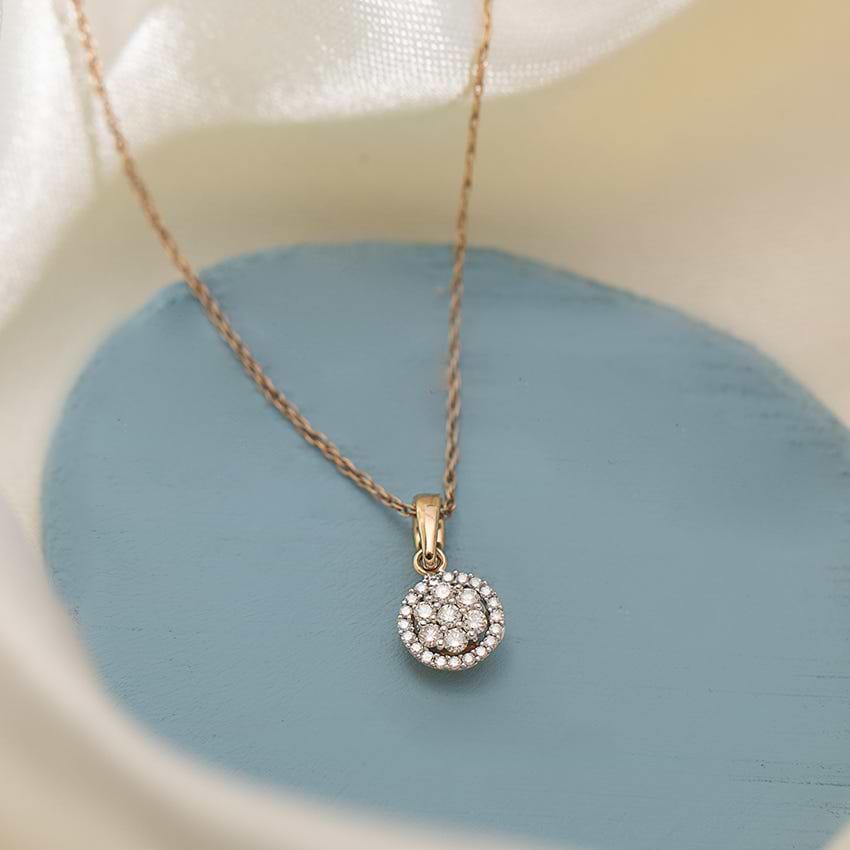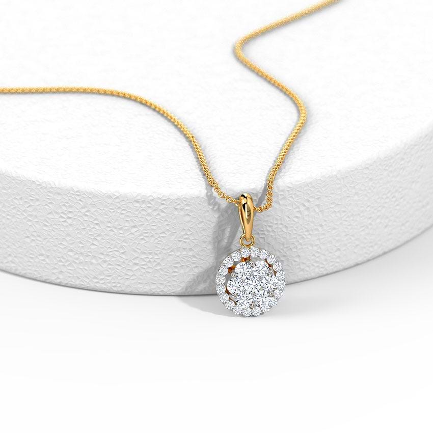 Chain shown here is not a part of the product sold. Carol Seven Stone Diamond Pendant For Women. Set in 18 KT Yellow Gold with Diamond (0.217 Ct, IJ-SI). The beautiful jewelry is crafted based on Cluster theme ideal for Everyday. Buy Jewelry online from India's Largest Online Jeweler. Shop perfect Jewelry gifts for your loved ones in the US. 15-Days Money Back, 100% Certified.