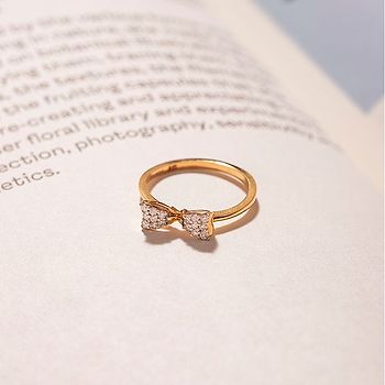 Cute Bow Diamond Ring For Women. Set in 18 KT Yellow Gold with Diamond (0.164 Ct, IJ-SI). The beautiful jewelry is crafted based on Modern theme ideal for Evening. Buy Jewelry online from India's Largest Online Jeweler. Shop perfect Jewelry gifts for your loved ones in the US. 15-Days Money Back, 100% Certified.