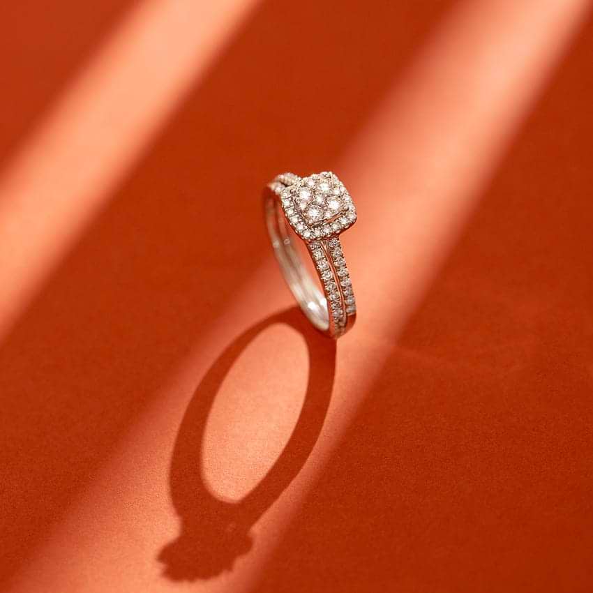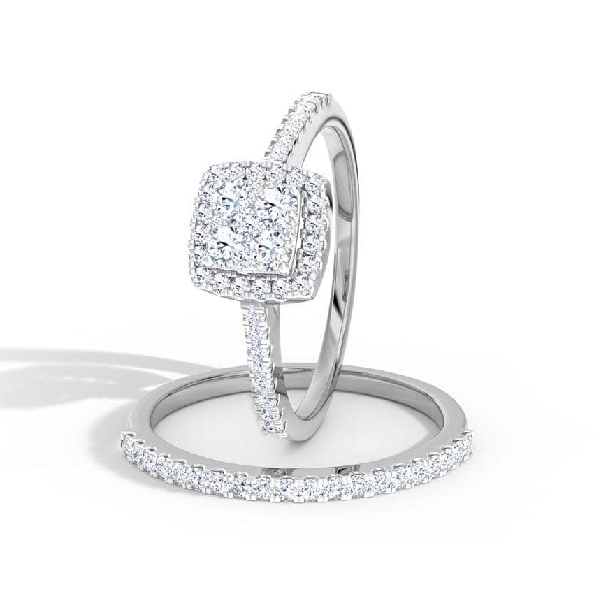 Flickering Diamond Bridal Ring Set For Women. Set in 18 KT White Gold with Diamond (0.65 Ct, EF-VVS). The beautiful jewelry is crafted based on Classic theme ideal for Everyday. Buy Jewelry online from India's Largest Online Jeweler. Shop perfect Jewelry gifts for your loved ones in the US. 15-Days Money Back, 100% Certified.