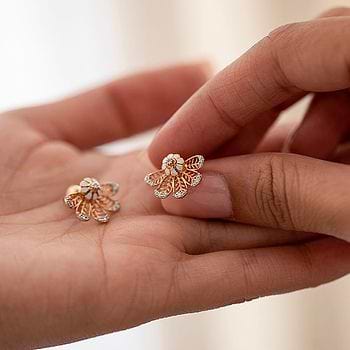 Harmony Bloom Diamond Stud Earrings For Women. Set in 14 KT Rose Gold with Diamond (0.184 Ct, IJ-SI). The beautiful jewelry is crafted based on Traditional theme ideal for Work Wear. Buy Jewelry online from India's Largest Online Jeweler. Shop perfect Jewelry gifts for your loved ones in the US. 15-Days Money Back, 100% Certified.