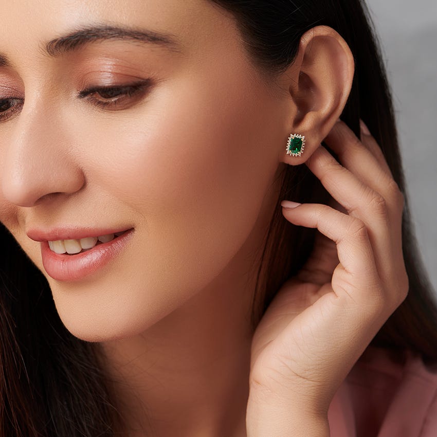 Haze Elegance Gemstone Stud Earrings For Women. Set in 18 KT Yellow Gold with Diamond/Gemstone (0.2 Ct, IJ-SI). The beautiful jewelry is crafted based on Cut Out theme ideal for Work Wear. Buy Jewelry online from India's Largest Online Jeweler. Shop perfect Jewelry gifts for your loved ones in the US. 15-Days Money Back, 100% Certified.