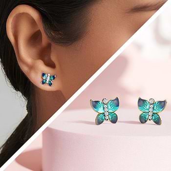 Hover Butterfly Diamond Stud Earrings For Women. Set in 18 KT Yellow Gold with Diamond (0.06 Ct, IJ-SI). The beautiful jewelry is crafted based on Traditional theme ideal for Work Wear. Buy Jewelry online from India's Largest Online Jeweler. Shop perfect Jewelry gifts for your loved ones in the US. 15-Days Money Back, 100% Certified.