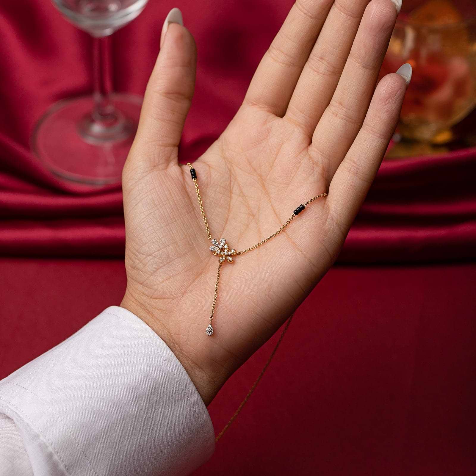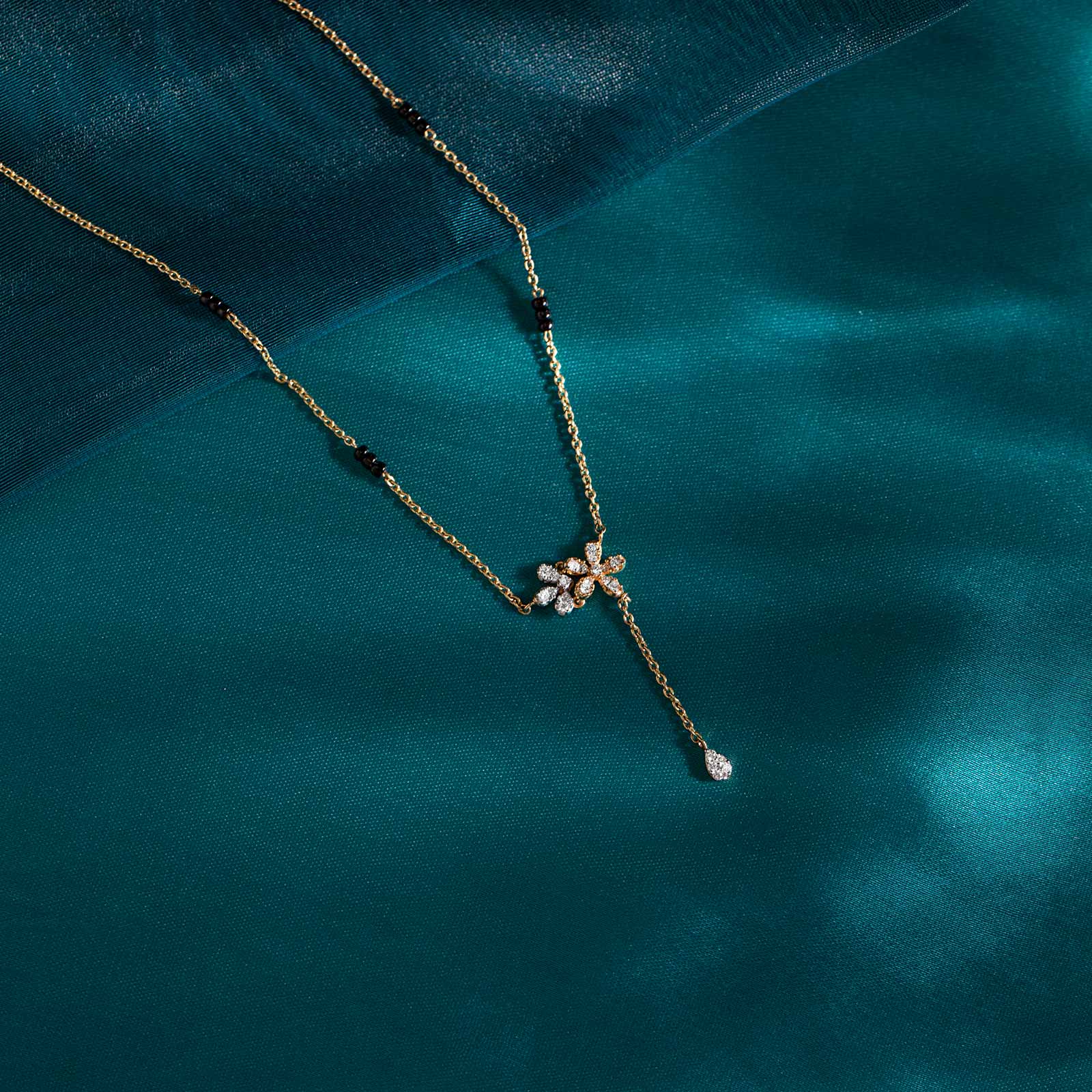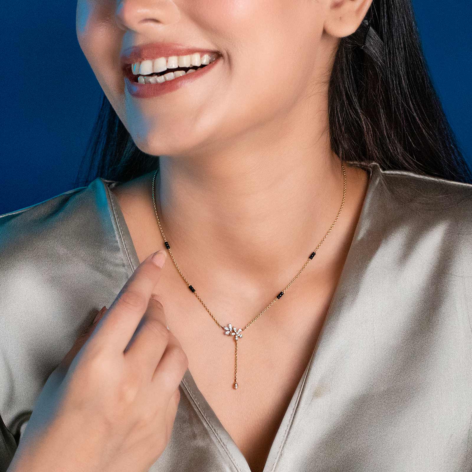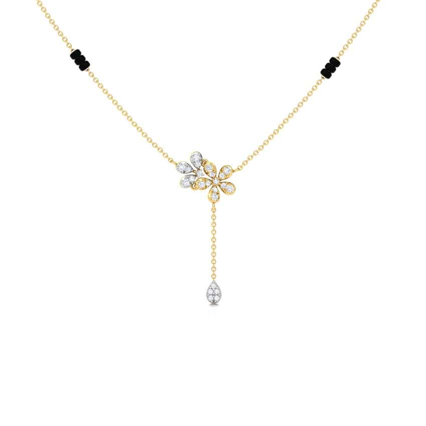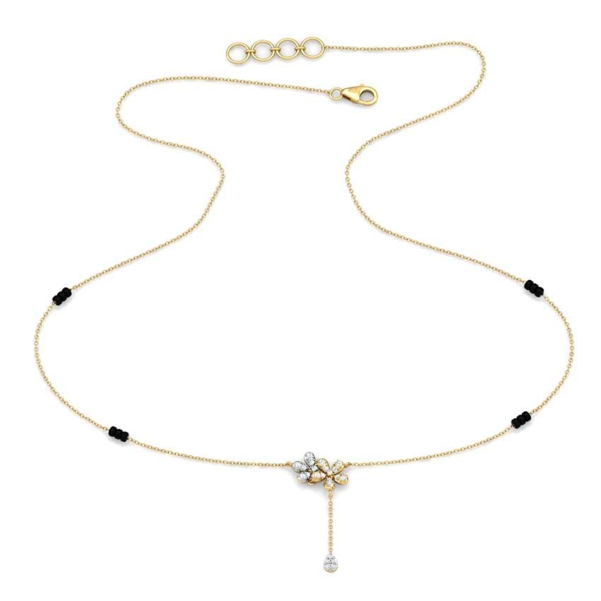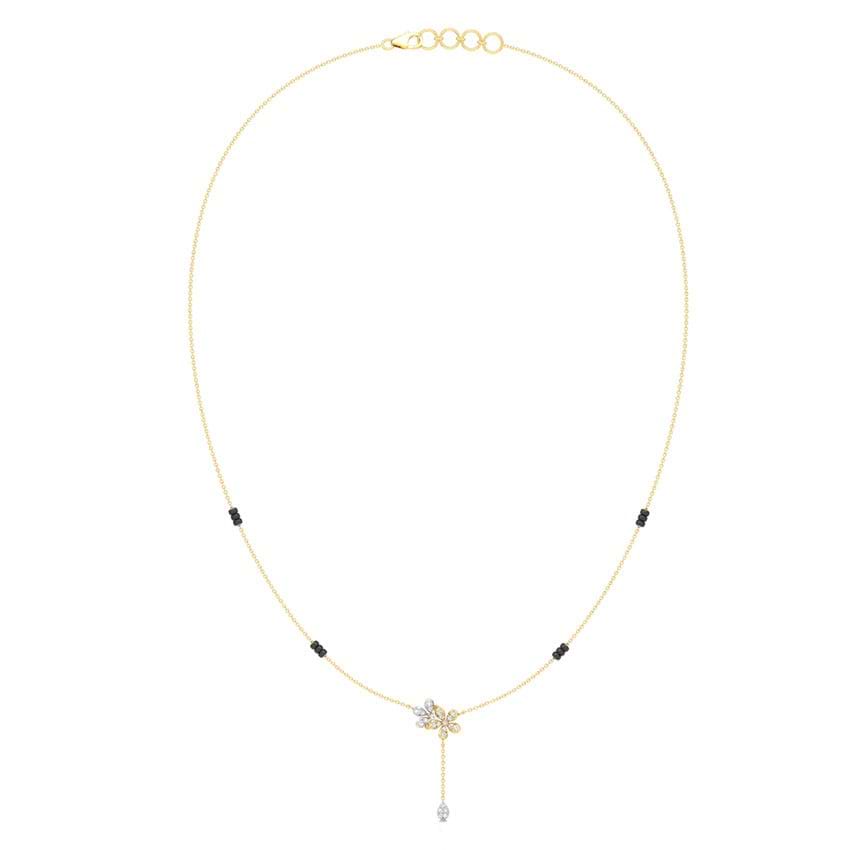 Inaya Diamond Mangalsutra For Women. Set in 18 KT Yellow Gold with Diamond (0.191 Ct, IJ-SI). The beautiful jewelry is crafted based on Floral theme ideal for Everyday. Buy Jewelry online from India's Largest Online Jeweler. Shop perfect Jewelry gifts for your loved ones in the US. 15-Days Money Back, 100% Certified.