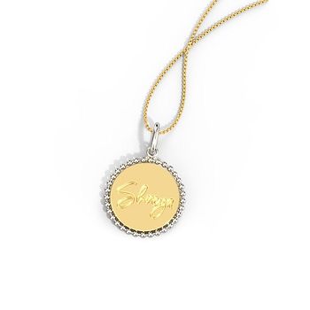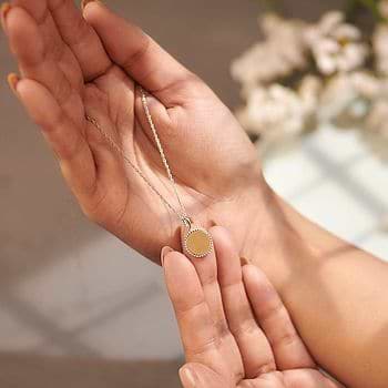 Chain shown here is not a part of the product sold. Personalised Name Gold Pendant For Women. Set in 14 KT Yellow, White with Gold ideal for Work Wear. Buy Jewelry online from India's Largest Online Jeweler. Shop perfect Jewelry gifts for your loved ones in the US. 15-Days Money Back, 100% Certified.