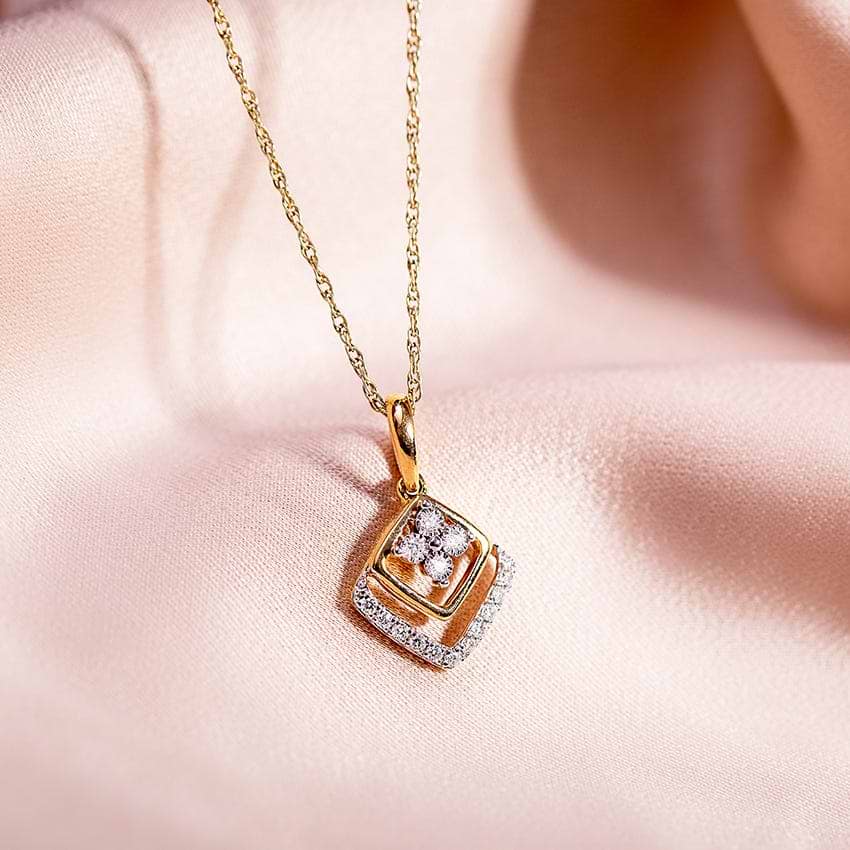Chain shown here is not a part of the product sold. Quad Miracle Plate Diamond Pendant For Women. Set in 18 KT Yellow Gold with Diamond (0.09 Ct, IJ-SI). The beautiful jewelry is crafted based on Ethnic theme ideal for Everyday. Buy Jewelry online from India's Largest Online Jeweler. Shop perfect Jewelry gifts for your loved ones in the US. 15-Days Money Back, 100% Certified.