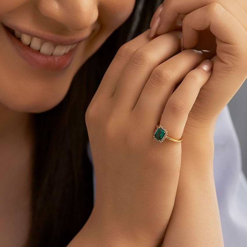 Riveria Elegant Gemstone Ring For Women. Set in 18 KT Yellow Gold with Diamond/Gemstone (0.1 Ct, IJ-SI). The beautiful jewelry is crafted based on Traditional theme ideal for Anniversary Milestone. Buy Jewelry online from India's Largest Online Jeweler. Shop perfect Jewelry gifts for your loved ones in the US. 15-Days Money Back, 100% Certified.