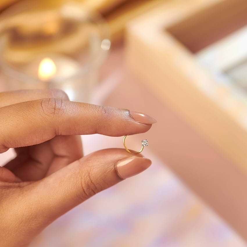 Solitaire Delight Diamond Nose Pin For Women. Set in 18 KT Yellow Gold with Diamond (0.1 Ct, EF-VVS). The beautiful jewelry is crafted based on Quirky theme ideal for Everyday. Buy Jewelry online from India's Largest Online Jeweler. Shop perfect Jewelry gifts for your loved ones in the US. 15-Days Money Back, 100% Certified.