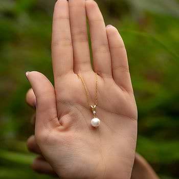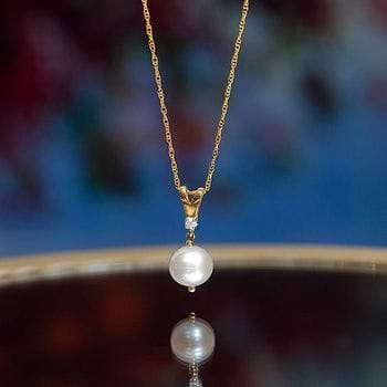 Chain shown here is not a part of the product sold.Victoria Pearl Pendant by CaratLane is a classic pearl pendan. It is a timeless addition to any jewelry collection. The pendant features a beautiful white pearl set in 18KT yellow gold, with a delicate gold chain that complements the pendant perfectly. This pendant is perfect for adding a touch of elegance to your everyday outfit or for special occasions.